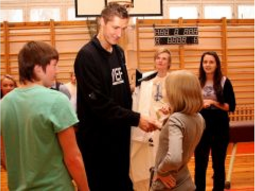 Basketbolists Kaspars Bērziņš viesojas Ogres ģimnāzijā (galerija)